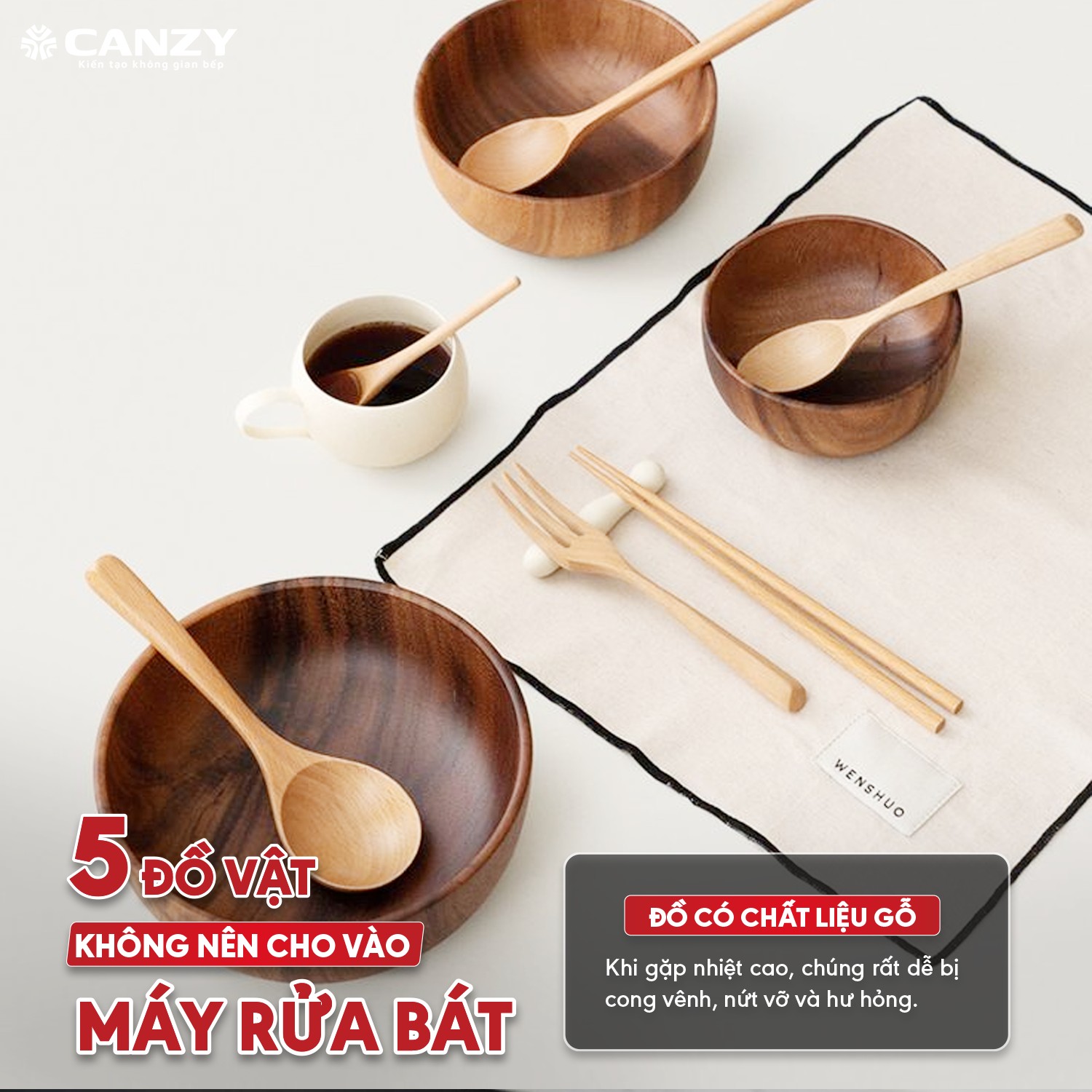 👉 Tốt nhất hãy rửa đồ gỗ bằng tay, lau khô ngay để giữ độ bền và an toàn.