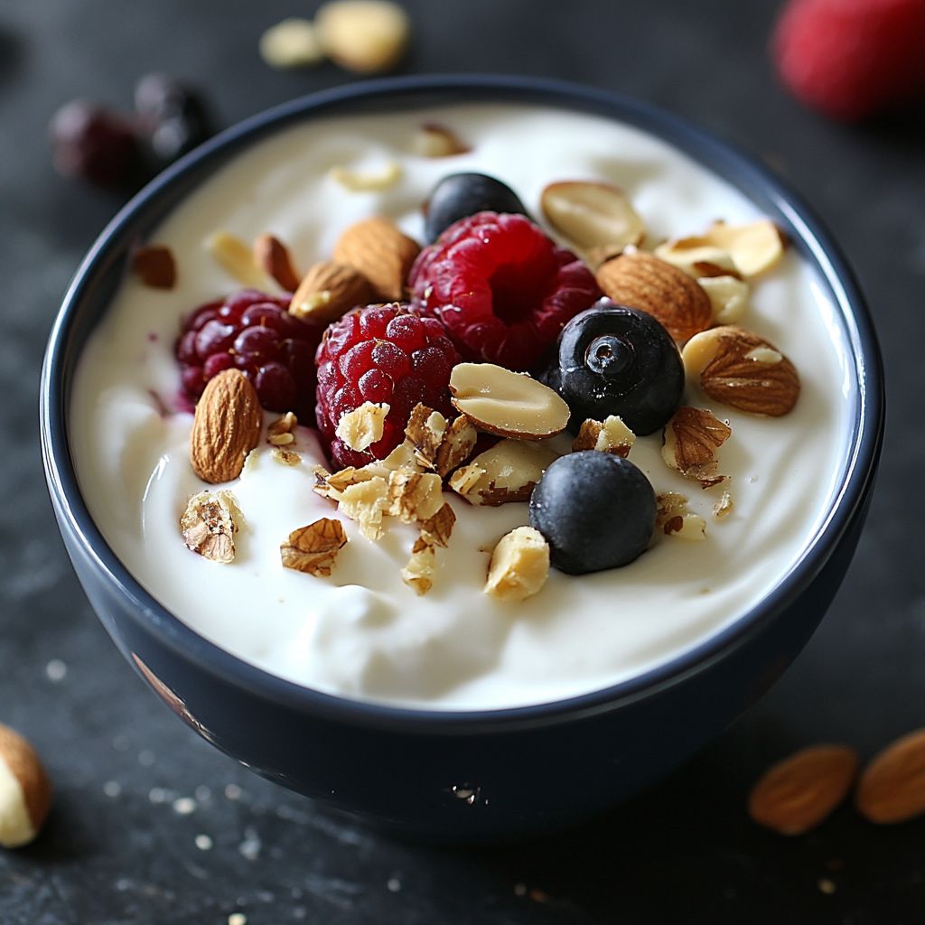 Kết hợp sữa chua với hạt chia, yến mạch cán dẹt hoặc quả mọng tươi. Tránh thêm mật ong, siro hoặc granola ngọt, vì chúng có thể làm tăng lượng đường đáng kể.